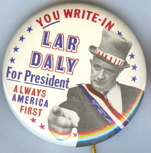 Title (ebay affiliate link): LAR DALY 3RD PARTY PRESIDENT, UNCLE SAM SUIT 1968 PIN