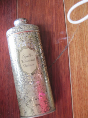 vintage talcum powder tin by squibb's unscented (e.r. squibb & son,usa since 18