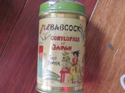 vintage talcum powder tin byBABCOCK'S CORYLOPSIS OF JAPAN