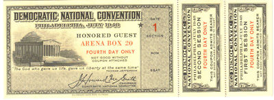 TRUMAN- DEWEY: 1948 DEM NAT CONV TICKET "HONORED GUEST"