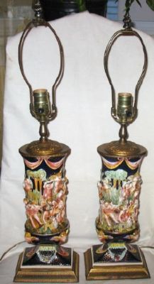 Stunning PAIR of CAPODIMONTE LAMPS.Orgies Theme