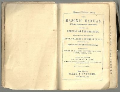 Title (ebay affiliate link): 1868 THE MASONIC MANUAL RITUALS OF FREEMASONRY Engraved Book