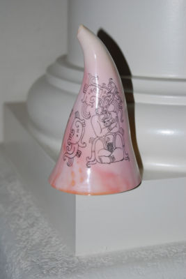 Title (ebay affiliate link): Mayan Incised Design Conch Shell- Mayan Drawings & Inscriptions