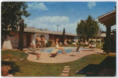 Title (ebay affiliate link): 1960s Mid Century Modern BATHING Beauty ALKAY Apt MOTEL POOL Phoenix AZ Postcard