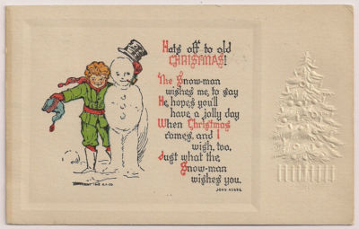 Title (ebay affiliate link): SNOWMAN & child "Christmas" color w/embossed Xmas tree mailed 1913 w/flag cancel
