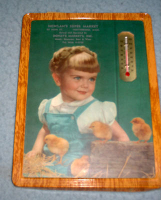 VINTAGE FRAMED THERMOMETER NOWLAN'S SJUPER MARKET NORTHBRIDGE, MA , 1954
