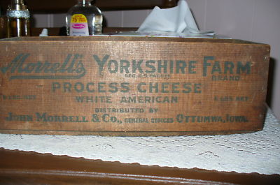 Title (ebay affiliate link): VTG. WOODEN BOX "MORRELS-YORKSHIRE FARMS"PROCESSED CHEESE-OTTUMWA,IOWA-EX COND.