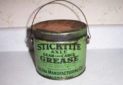 Title (ebay affiliate link): VINTAGE TIN 3 LB STICKTITE AXLE GREASE PAIL GALENA IL MANUFACTURING CO & COVER