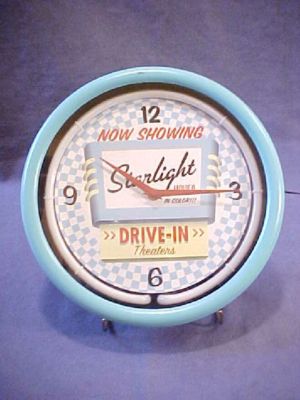 Title (ebay affiliate link): NEON CLOCK SIGN advertising STARLIGHT DRIVE IN THEATERS works