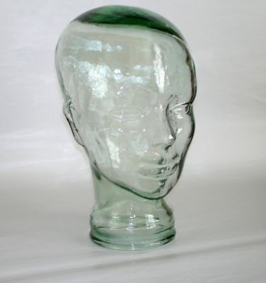 VINTAGE CLEAR GREEN GLASS HEAD MANNEQUIN DISPLAY