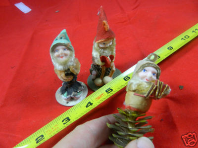 Title (ebay affiliate link): VINTAGE PINECONE DWARF ORNAMENT elf gnome pixie lot 3 christmas