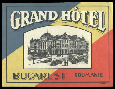 Grand Hotel BUCHAREST Romania - vintage luggage label