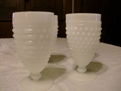Title (ebay affiliate link): Set 4 Hobnail White Milk Glass Depression Goblets Ice Cream Sundae 5.5" Tall