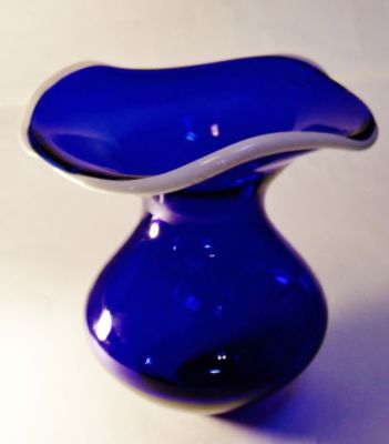 Title (ebay affiliate link): Large Cobalt Blue Wide Ruffle Vase w/ Milk Glass Decorative Bead