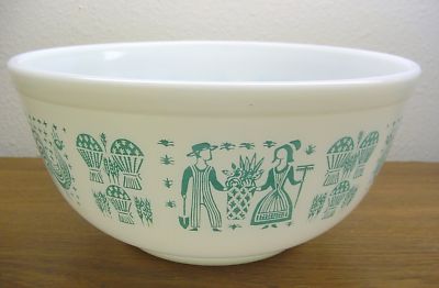 Title (ebay affiliate link): Pyrex 2 1/2 Qt Butter Print Rooster Turquoise Mixing Bowl-Milk Glass- Amish