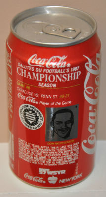 Title (ebay affiliate link): Rare Coca Cola Coke Can Syracuse Football 1987 Championship Season Game 6
