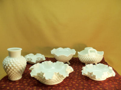 Vintage Fenton Hobnail Milk Glass Six Piece Lot