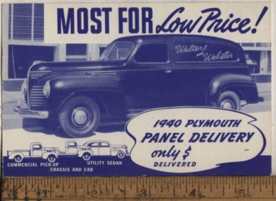 Title (ebay affiliate link): Rare Promo Postcard 1940 Plymouth Panel Delivery Walters and Webster Plymouth