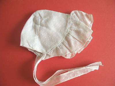 Title (ebay affiliate link): antique depression era DOLL BONNETT dotted swiss fabric