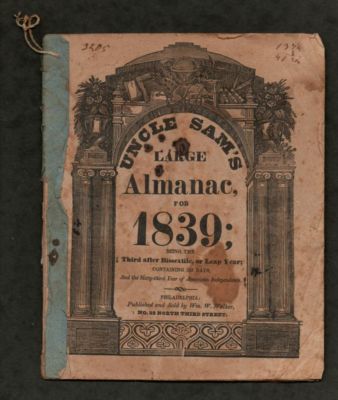 Title (ebay affiliate link): 1839 Uncle Sam's Large Almanac for 1839 pub.d by William Walker Philadelphia