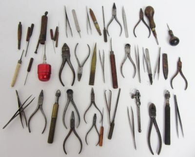 Title (ebay affiliate link): LARGE COLLECTION OF ANTIQUE CLOCK & WATCH TOOLS VINTAGE HAND HELD TOOLS T9