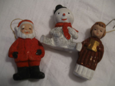 VINTAGE Mica Christmas Ornaments Santa Snowman Caroler PAPER MACHE japan