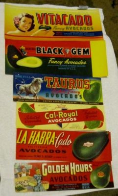 Title (ebay affiliate link): 6 VINTAGE CRATE LABELS original & unused ~ CALIFORNIA AVOCADOS