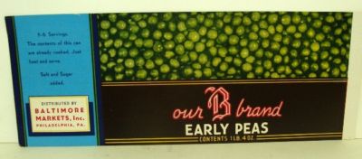 Title (ebay affiliate link): 1930's Our B Brand Peas Philadelphia, PA. Vegetable Can Label