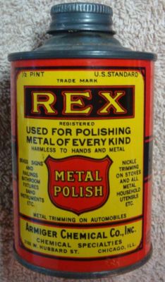 Title (ebay affiliate link): REX Metal Polish 1/2 Pint Tin Can, Armiger Chemical Co., Chicago Il Brilliant