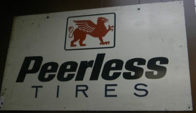 PEERLESS TIRES VINTAGE SIGN CARS OLD PICTURE ADVERTISING SERVICE STATION DECOR