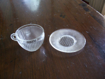 Title (ebay affiliate link): Homespun crystal child cup/saucer and Akro Agate small green tumbler