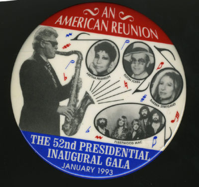 Title (ebay affiliate link): BILL CLINTON 1993 Inaugural Pinback Button STREISAND Elton John FLEETWOOD MAC