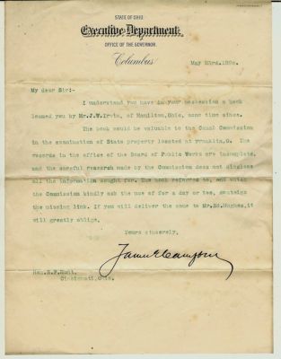 Thirty-eighth Governor of Ohio James Edwin Campbell 1890 Rare OH Canal Letter