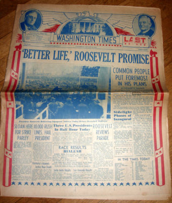 Title (ebay affiliate link): ROOSEVELT/GARNER 1937 Innagural Edition DC Newspaper JUGATE