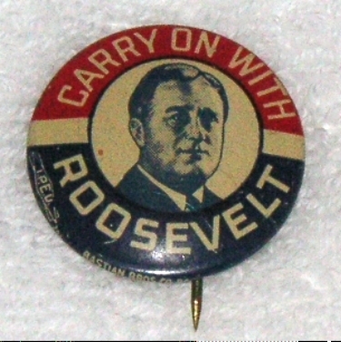 CARRY ON WITH ROOSEVELT POLITICAL CAMPAIGN BUTTON PIN BADGE PINBACK