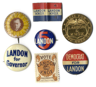 Title (ebay affiliate link): Lot of Alfred Landon 1936 Campaign Buttons Etc