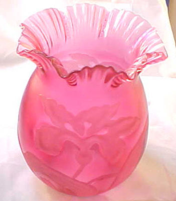 Fabulous Antique Victorian Cranberry Etched Glass Lamp Shade Globe