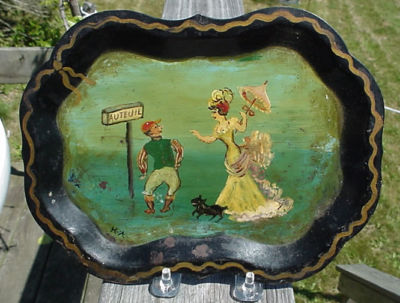 Title (ebay affiliate link): ANTIQUE TOLEWARE SIGNED H A HORSE RACING AUTEUIL HIPPODROME 9" TOLE TRAY