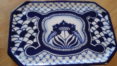 VINTAGE FLOW BLUE RED WARE= TERRACOTTA = PLAQUE