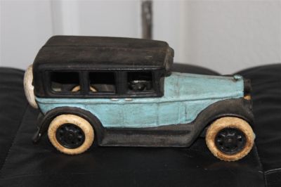 Title (ebay affiliate link): VINTAGE ANTIQUE CAST IRON TOY CAR - SEDAN CAR WITH DRIVER & SPARE TIRE