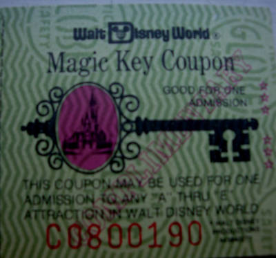 DISNEY WORLD TICKET RARE A-E COMPLIMENTARY MINT MAGIC KEY TICKET 1979 ANY AGE NR