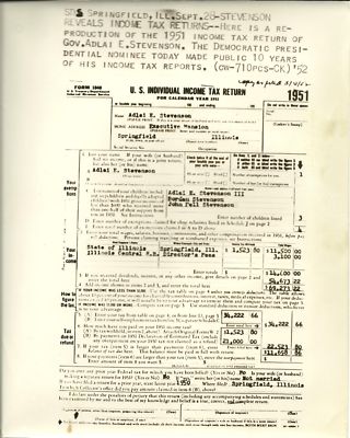 Title (ebay affiliate link): DNC Candidate Adlai Stevenson AP Wire Photo of His Revealed 1951 Tax Return