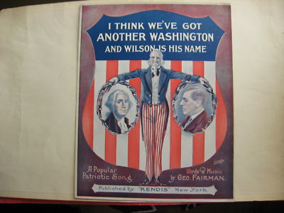Title (ebay affiliate link): 1916 VINTAGE WOODROW WILSON SHEET MUSIC (Uncle Sam & George Washington on Cover)