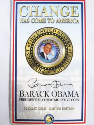 Title (ebay affiliate link): The Franklin Mint BARACK OBAMA Commemerative Coin US MINT half dollar 24KT