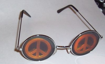 Title (ebay affiliate link): $12V PEACE SIGNS IN LENS EYEGLASSES HOLOGRAM ROUND WIRE RIMS HIPPIE COSTUME NEW!