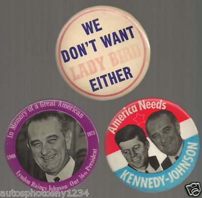 Title (ebay affiliate link): Lyndon Johnson Presidential Political Vintage Button Pin Large 3 1/2" Lot of (3)