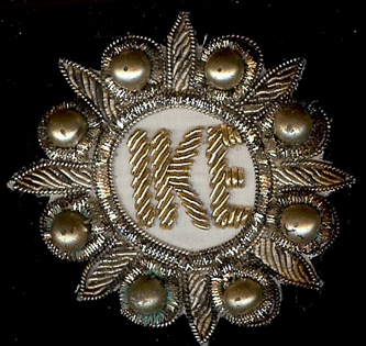 IKE EISENHOWER FABRIC, METAL THREAD AND BEAD CAMPAIGN PIN-BACK