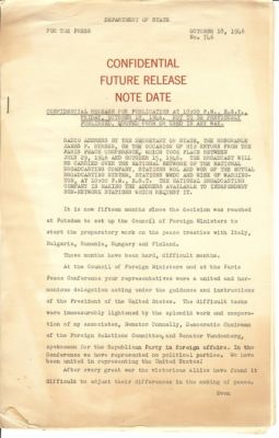 PRESIDENT HARRY TRUMAN ~ 1946 PRESS RELEASE WW 2 PEACE TREATY - SOVIET UNION