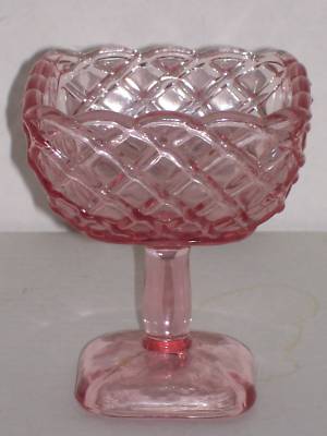 Title (ebay affiliate link): LE Smith Trellis 3" Pink Stemmed Candy Vintage Glass
