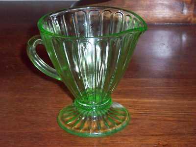 Title (ebay affiliate link): GREEN VASELINE GLASS CREAMER RIBBON HAZEL ATLAS MINT!
